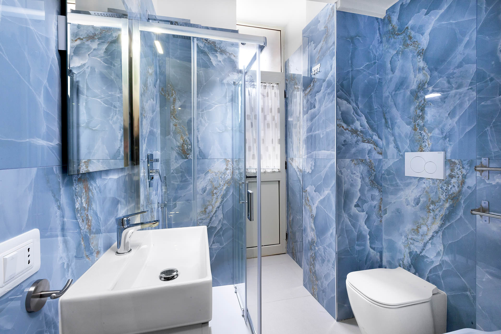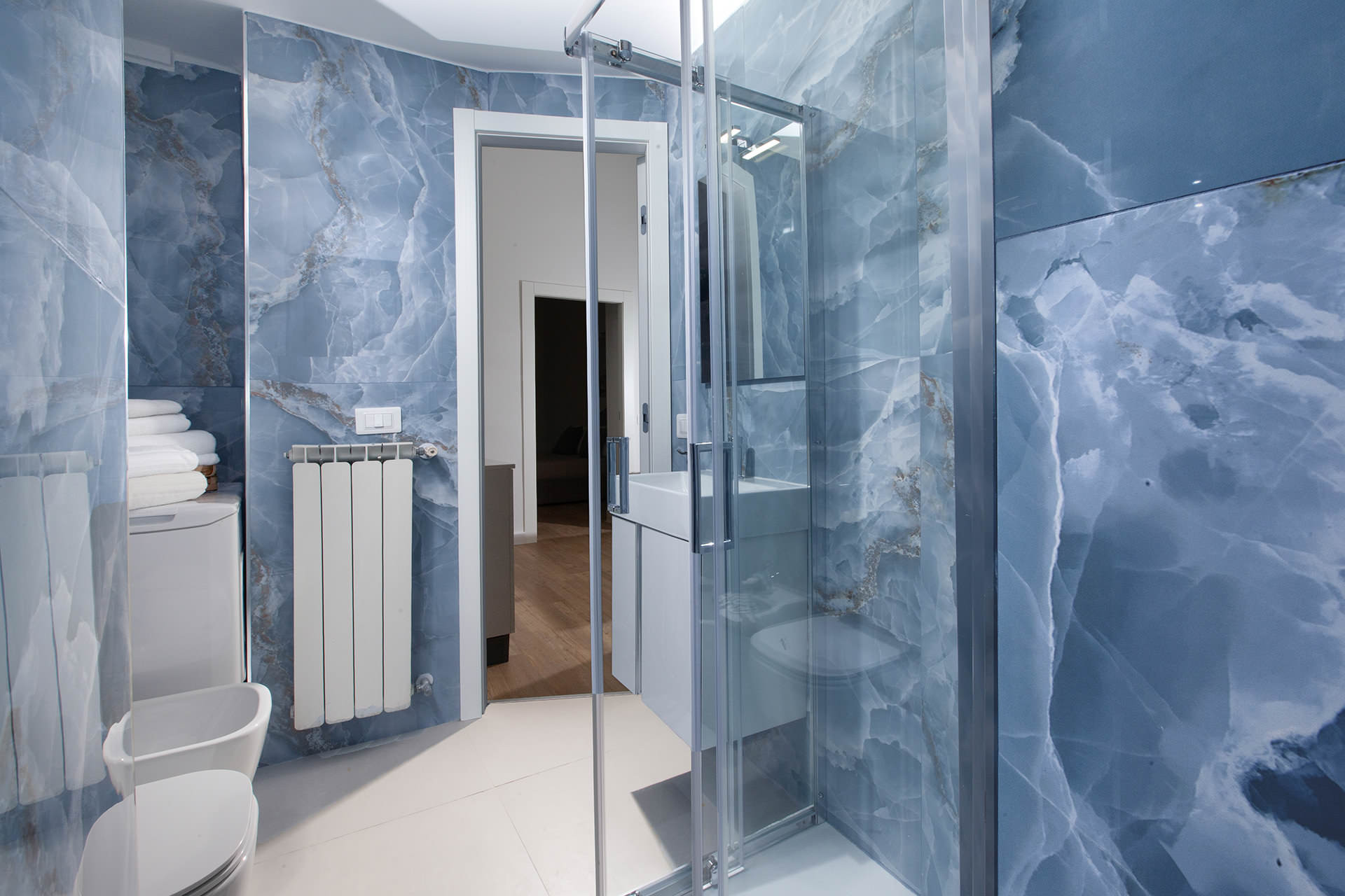 L'appartamento, al secondo piano di un elegante palazzo storico, dispone di tre camere da letto: due matrimoniali e una matrimoniale con letto singolo, perfetta per ospitare fino a otto persone. Completano la proprietà tre bagni, di cui uno en suite nella camera matrimoniale con letto singolo, e gli altri due a disposizione delle altre camere e degli ospiti.