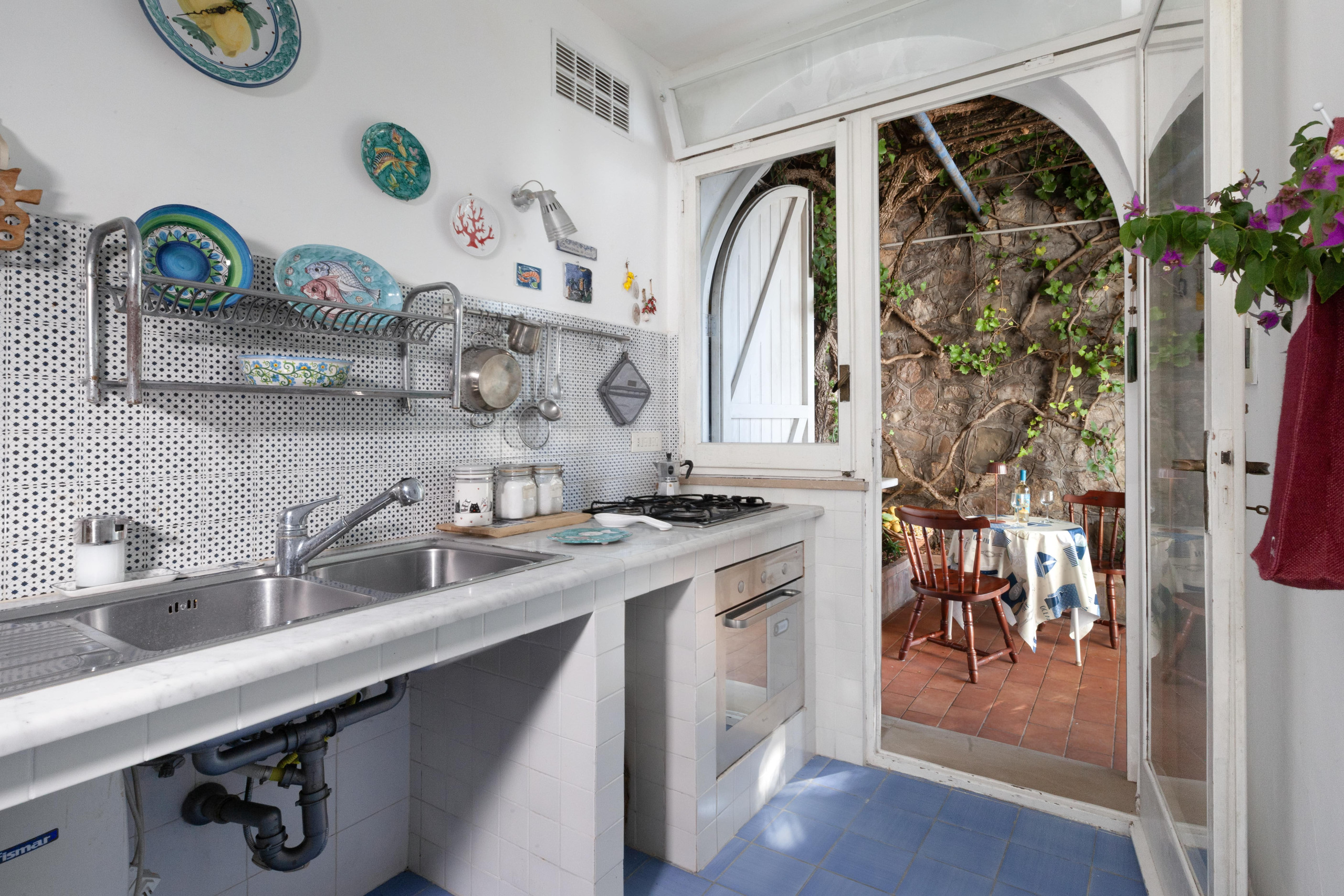 All’ingresso vi accoglie una cucina funzionale e ben attrezzata (con forno, frigorifero, microonde, bollitore, spremiagrumi e tostapane), perfetta per preparare colazioni vista mare o piatti ispirati alla tradizione mediterranea.